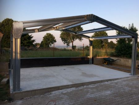La structure est réalisée en profil galvanisé allant de 2 à 3 mm en fonction des dimensions de votre bâtiment. Les accessoires de liaison sont en tôle acier galvanisé d’une épaisseur de 4 mm .